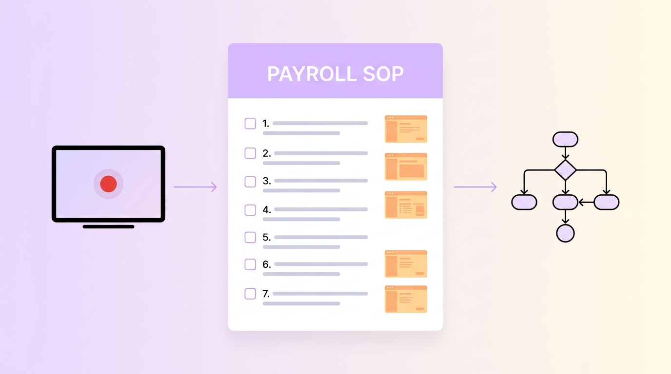 A single screen recording of a payroll specialist performing their routine work generates a comprehensive SOP that includes: